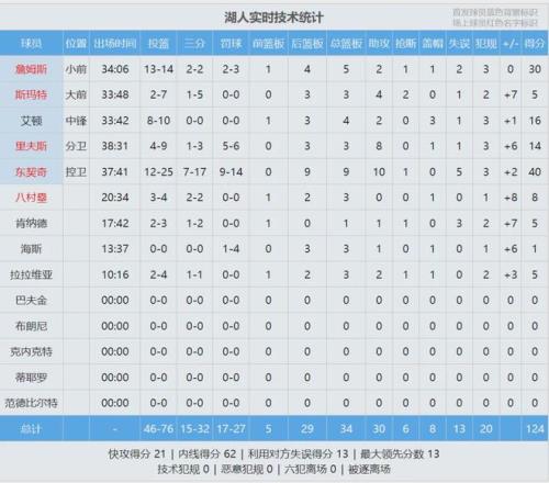 東契奇先是助飛詹姆斯,緊接著大心髒三分飆進。最後1分鍾,湖人領先到9分,火箭大勢已去。全場結束,湖人124-116擊敗火箭,湖人豪取7連勝。東契奇25投12中砍下40分9板10助、詹姆斯14投13中高效率砍下30分5板2助。