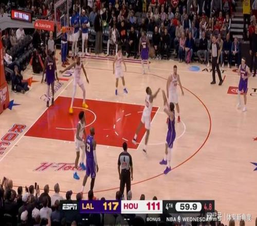 當比賽時間來到大約2分30秒時,湖人隊以113 - 111的微弱優勢領先兩分。此時,東契奇展現出超強實力,在連續兩個進攻回合中,他成功突破火箭隊的夾擊戰術,一路突進至罰球線附近。這一舉動吸引了杜蘭特的協防,東契奇則巧妙地將球傳給底角的隊友,助力隊友完成一記精彩的空接扣籃。緊接著,在第三個進攻回合,東契奇麵對小賈,果斷出手,命中一記後撤步三分。憑借這波7 - 0的得分高潮,湖人隊徹底鎖定勝局,讓比賽的懸念煙消雲散。