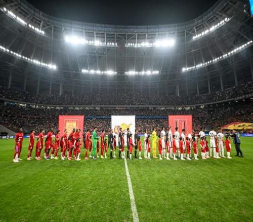 比賽開始時,重慶主場的氣氛非常熱烈!TIFO很有氣勢,一條巨龍徐徐展開。