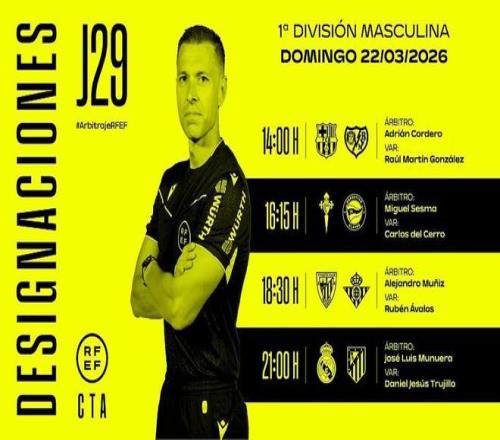 官方消息,何塞-穆努埃拉將執法西甲第29輪皇馬vs馬競的馬德裏德比。