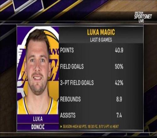 這8場比賽,東契奇全部出戰,最低出手次數是24次,最低得分是31分,毫無疑問已經是湖人的絕對核心,這期間他場均能夠拿下40.9分8.9籃板7.4助攻,再次證明隻要讓東契奇當核心,他是可以率隊贏球的。