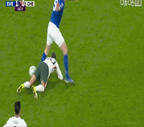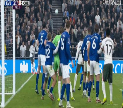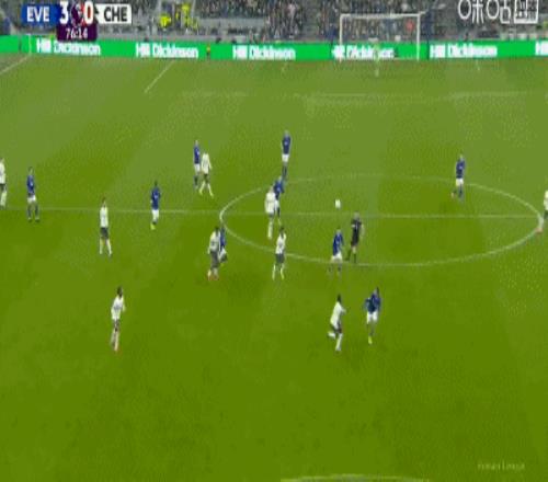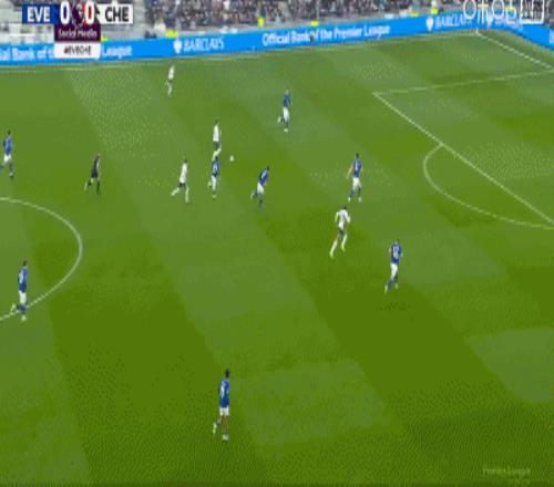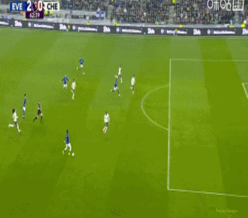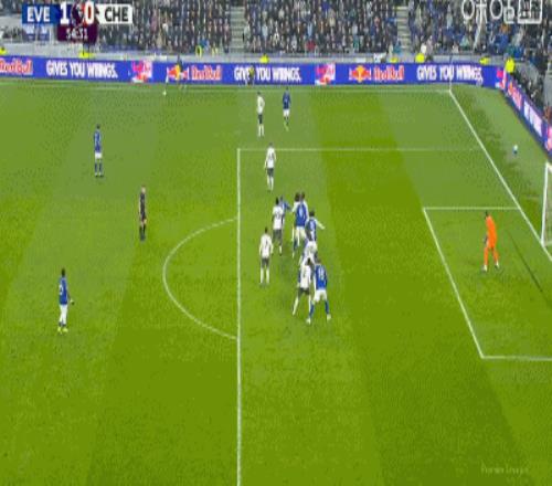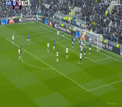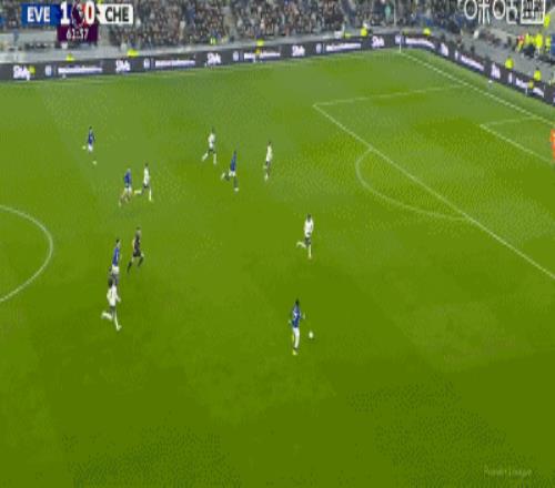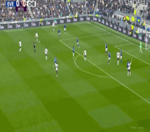 第34分鍾,加納直塞,貝托冷靜挑射破門,埃弗頓1-0切爾西