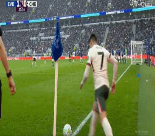 第74分鍾,埃斯特旺角球開出,皮球擊中橫梁