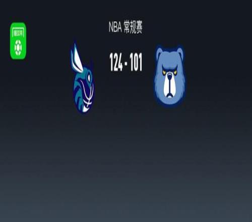 第四節黃蜂科比-懷特拿下6分,灰熊GG-傑克遜拿下6分,最終黃蜂124-101戰勝灰熊
