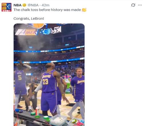 這是勒布朗創造曆史的一場比賽,魔術主場有19597人來觀戰創造魔術主場第二高的上座率,勒布朗拋鎂粉的一瞬間全場都在歡呼。