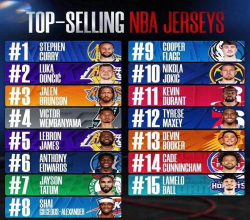 又到了季末結算期了,今天是本賽季常規賽球衣銷量榜。